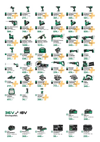 36V - 2,000 WAC/DC Adapter ET36A351.%u201328 mm - 3,2 JBohr-/Mei%u00dfelhammerDH3628DA536.%u201328 mm - 3,2 J - QuickBohr-/Mei%u00dfelhammerDH3628DC574.%u2013824 mmBetonverdichterUV3628DA511.%u2013155/100 NmBohrschrauber DS36DC424.%u2013155/100 NmSchlagbohrschrauberDV36DC436.%u2013%u00d8254 mmPaneels%u00e4geC3610DRA899.%u2013680 m%u00b3/hGebl%u00e4seRB36DA452.%u2013%u00d8254 mmTischkreiss%u00e4geC3610DRJ799.%u20136, 8, 12 mm - 50 mmOberfr%u00e4seM3612DA561.%u201340 mm - 9,2 JBohr-/Mei%u00dfelhammerDH3640DA874.%u20131.900 Nm - 3/4\Schlagschrauber WR36DF574.%u201376 x 533 mmBandschleifer SB3608DA461.%u201335 L/s - HEPA filterNass-/ TrockensaugerRP18DA199.%u2013Max. 159 mmWinkelbohrmasch.D36DYA574.%u201318 m3/min.Ventilator UF18DSAL168.%u201382x2 mmHobel P18DSL349.%u201370/40 NmBohrschrauber DS18DE274.%u201332 mm - 2,500 /min.S%u00e4bels%u00e4geCR18DBL374.%u201355 Nm - QuickBohrschrauberDS18DDQ224.%u20134,000 LumenTripod LightUB18DG399.%u2013Bluetooth - DAB+/FMRadio UR18DA161.%u201311 bar - dual functionKompressor UP18DA199.%u201318 V - 15,7 kgK%u00fchl- und W%u00e4rmebox UL18DBA911.%u201318 VK%u00fchl- und W%u00e4rmebox UL18DF168.%u2013122 m/s - 0,4 kgGebl%u00e4seRA18DA149.%u201355 Nm - 1,3 kgSchlagbohrschrauberDV18DD224.%u201318V - 2,0 AhAkku BSL1820M105.%u2013Stromquellen. Stromquellen.T%u00e4fernagler N1804DA599.%u2013K90 - 13-40 mm230 mmWinkelschleifer G3623DA686.%u2013BGN - 16-50 mmStift Nagler NT1850DA674.%u2013BFN - 25-64 mmStauchkopfnagler NT1865DSA661.%u2013BDA - 36-64 mmStauchkopfnagler NT1865DAA661.%u2013HK20R - 25-35 mmHaftennagler 20%u00b0 NR1890DRA_HAFTE939.%u2013%u00d8125 mmExzenterschleifer SV1813DA224.%u2013140 Nm - 1,2 kgSchlagschrauberWH18DD211.%u2013215 Nm - 1,6 kgSchlagschrauber WH36DC399.%u2013770 Nm - 1/2\Schlagschrauber WR36DE405.%u2013380 Nm - 1/2\Schlagschrauber WR36DH361.%u20131.400 Nm - 1/2\Schlagschrauber WR36DG561.%u20135.000/minTrockenbauschrauberW18DA_OHNE324.%u20135.000/minTrockenbauschrauberW18DA436.%u201318 mm - 1,3 JBohr-/Mei%u00dfelhammerDH18DPA399.%u2013AK34 - 38-64 mmAnkernaglerNR3665DA749.%u201321%u00b0 - 57/45 - 89/77 mmDuplex Nagler NR3675DD856.%u2013DN16 - 25-45 mmDachpappnaglerNV1845DA874.%u2013NP34 - 50-90 mmStreifennagler 34%u00b0NR1890DCA839.%u2013K9 - 6-13 mmKlammernagler N1812DA359.%u20134.1 x 25-90 mmAutomatik Hammer NH18DSL249.%u20137,6 L - 135 psi - 12,4 kgKompressorEC36DA549.%u2013125 mm - SchiebeWinkelschleiferG3613DE349.%u2013127 x 120 mmBands%u00e4geCB3612DA674.%u2013%u00d8150 mm - 57,5 mmMetall-Kreiss%u00e4geCD3605DB430.%u2013Starlock MaxMultitoolCV18DMA349.%u2013Starlock - OISMultitoolCV18DA293.%u2013500-1.200 rpmR%u00fchrger%u00e4t UM36DA374.%u2013297 ml/min - 4,3 kgFettpresse AL18DA459.%u201310-16 mm StahlSchneid-/Biegeger%u00e4t VB3616DA3124.%u20133.000 N - 400 mlKartuschenpistoleAC18DA_400ML405.%u20133.000 N - 600 mlKartuschenpistoleAC18DA_600ML418.%u201330-550%u00b0 CHei%u00dfluftpistoleRH18DA211.%u2013135 mm - StabStichs%u00e4geCJ18DB299.%u2013160 mm - StabStichs%u00e4geCJ36DB461.%u201332 mm - 3.000 /min.S%u00e4bels%u00e4geCR36DA474.%u2013%u00d8165 mm - 66 mmHandkreiss%u00e4geC3606DB486.%u2013%u00d8165 mm - 66 mm - GRHandkreiss%u00e4geC3606DUM536.%u201366 mm - SoftstartTauchkreiss%u00e4geC3606DPA699.%u20136, 8 mmKantenfr%u00e4se M1808DA399.%u20133,5 m3/min.Gebl%u00e4seRB18DC124.%u2013300 mm - 12,6 m/sKettens%u00e4geCS3630DC411.%u2013Asts%u00e4ge CS1810DD217.%u20132,000 LumenBaustellenstrahler UB18DB161.%u20134,000 LumenBaustellenstrahler UB18DC261.%u201310.000 LumenBaustellenstrahlerUB18DD411.%u2013230 LumenLampe UB18DJL74.%u20133200-10000 u/minDachrinnentr%u00e4gereinlassfr%u00e4seG3613DVFRTEFH1590.%u201315-40 mmBetonnaglerNC1840DA914.%u201340-80 mmMagazinschrauberMSC80A_HIKOKI1690.%u201325-51 mmMagazinschrauberMSC50A_HIKOKI1515.%u201385 mmHandkreiss%u00e4geC3609DUM711.%u2013NK20 - 50-90 mmStreifennagler 20%u00b0 NR1890DRA839.%u2013125 mm - SchiebeWinkelschleiferG3613DVE386.%u201318V/MV, USB - 8ASchnellladeger%u00e4tUC18YSL399.%u201318V/MVSchnellladeger%u00e4tUC36YSL2124.%u20134x 18V/MV2x USB, 230V - 8AUC18YTSL255.%u201336/18V - 2,5/5,0 AhAkku Akku_A199.%u201336/18V - 4,0/8,0 AhAkkuAkku_B248.%u201336/18V - 4,0/8,0 AhAkkuBSL3640MVT299.%u20132x BSL36A18X +UC18YSL3Booster_A360.%u20132x BSL36B18X + UC18YSL3Booster_B440.%u2013Stromquellen.Legende: Brushless Motor technology Stapelbarer HSC Koffer Transportkoffer Karton Bonusakku-AktionRE%u00c7OIS TA BATTERIE BSL36A18X BONUS MAINTENANTAVEC ENREGISTREMENTLe nombre de batteries bonus est limit%u00e9 %u00e0 un maximum de 5 par participant.Produits en promotion indiqu%u00e9sSICHERN SIE SICH JETZT IHREN BONUSAKKU BSL36A18XBEI REGISTRIERUNGDie Anzahl der Bonus-Akkus ist auf maximal 5 pro Teilnehmer begrenzt.Aktionsprodukte gekennzeichnet6,8 J - 2.880/minBohr-/MeisselhammerH3641DA586.%u2013