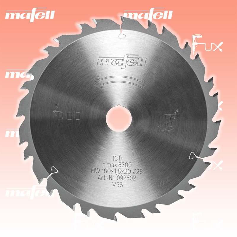 Zu "Sägeblätter" von Mafell Mafell KSB-WU160 GT Sägeblatt 160 mm Bestell- und Artikelnummer: 092602 Die neuen Sägeblätter mit gruppenverzahnter Zahnteilung und innovativen Schneide-Geometrien sind speziell auf die Anwendungesgebiete von Mafell-Sägen abgestimmt. Durch die neue Generation der Zahnteilung verbessert sich spürbar die Schnittqualität, es verringert sich die Leistungsaufnahme und der Spantransport wird deutlich verbessert. Zudem verbessert sich die Kantenqualität bei Sägeschnitten quer zur Faserrichtung und ein schneller Sägefortschritt wird deutlich spürbar. Einsatzgebiet Für universellen Einsatz Massivholz, Massivholzplatten, Holzschichtplatten Vorteile Die einzigartige Kombination aus schmaler Schnittfuge und optimaler Hartmetall-Legierung sorgt für längere Akkulaufzeit und deutlich längere Material-Standzeit. Technische Daten Durchmesser 160 mm Sägeblattaufnahme 20 mm Stammblattdicke 1.2 mm Schnittbreite 1.8 mm Zähnezahl 28 Gruppenverzahnung 4 x 7 Zahngeometrie WZ/FZ Zähneschliff 5 ° Gewicht 0.28 kg Standard-Ausrüstung Verkaufseinheit 1 Stk. Listenpreis CHF 70.20 Fuxpreis CHF 63.00 inklusive 8.1% MwSt Versand CHF 15.00 Kein Grauimport! Produkt bestellen Verkaufseinheit 1 Stk. 1 Stück 2 Stück 3 Stück 4 Stück 5 Stück 6 Stück 7 Stück 8 Stück 9 Stück 10 Stück 11 Stück 12 Stück 13 Stück 14 Stück 15 Stück 16 Stück 17 Stück 18 Stück 19 Stück 20 Stück 21 Stück 22 Stück 23 Stück 24 Stück 25 Stück 26 Stück 27 Stück 28 Stück 29 Stück 30 Stück 31 Stück 32 Stück 33 Stück 34 Stück 35 Stück 36 Stück 37 Stück 38 Stück 39 Stück 40 Stück 41 Stück 42 Stück 43 Stück 44 Stück 45 Stück 46 Stück 47 Stück 48 Stück 49 Stück 50 Stück Alle Angaben ohne Gewähr und solange Vorrat reicht!Wiederverkäufer werden? Produkt als PDF NEUHEITAKTION 10%