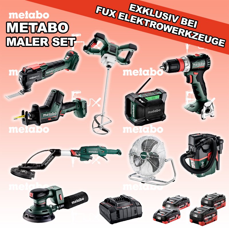 Zu "Maler Set" von Metabo FUX SPECIAL EXKLUSIV BEI FUX Metabo Maler Set 5 Bestell- und Artikelnummer: Maler Set 5 FULL Service: 36 Monate zum Nulltarif für Sie! Weitere Infos zum FULL Service BS 18 L BL Q Akku-BohrschrauberAkkuspannung 18 V Drehzahl 0 - 500 / 0 - 1700 /min Drehmoment hart / weich 60 / 28 Nm Gewicht (mit Akkupack) 1.3 kgInfos RW 18 LTX BL 120 Akku-RührwerkAkkuspannung 18 V Max. Rührkorb-Durchmesser 120 mm Max. empfohlene Mischmenge 30 l Werkzeugaufnahme Innengewinde M 14 Infos AS 18 L PC Compact Akku-Sauger Akkuspannung 18 V Luftleistung max. 2100 l/min Unterdruck 120 hPa (mbar) Behältervolumen 6 lInfos SXA 18 LTX 150 BL Exzenterschleifer Akkuspannung 18 V Durchmesser des Stütztellers 150 mm Leerlaufdrehzahl 4000 - 10000 /min Gewicht (mit Akkupack) 1.7 kg Infos R 12-18 DAB+ BT Akku-BaustellenradioDAB+ Akkuspannung 12 V / 18 V Extreme Akkupacks mit 14,4 und 18 Volt Gewicht 1.85 kgInfos SSE 18 LTX BL Compact Akku-SäbelsägeAkkuspannung 18 V Hubzahl 0-3000 min-1 Hublängen 16 mm Gewicht (mit Akkupack) 1.8 kgInfos MT 18 LTX BL QSL Akku-Multitool Akkuspannung 18 V Schwingzahl bei Leerlauf 8.000 - 20.000 /min Schleifplatte, Maß Eck zu Eck 93 mm Gewicht 1.7 kgInfos AV 18 Akku-VentilatorAkkuspannung 18 V Max. Luftgeschwindigkeit 3,8 m/s Flügeldurchmesser 355 mm Gewicht (mit Akkupack) 1,2 kgInfos LSV 5-225 Comfort LanghalsschleiferLeistungsaufnahme 500 Watt Durchmesser Schleifteller 225 mm Leerlaufdrehzahl 1000 - 1650 min-1 Gewicht 4.5 kgInfos 2 x 18 V, 4.0 Ah, LiHD Akkupack18 V 4.0 Ah ( LiHD Akkus ) Infos 2 x 18 V, 5.5 Ah, LiHD Akkupack18 V 5.5 Ah ( LiHD Akkus ) Infos ASC 145, 12 - 36 V "Air Cooled" LadegerätZum Aufladen aller Li-Power Schiebesitz-Akkupacks (12 V - 36 V). Ladestrom 8.0 AInfos Registriere die in diesem Set vorhandenen Metabo Maschinen auf metabo.ch, und ergattere dir bis zu 5 Gratis Akkus!Zusätzlich offerieren wir zu diesem Set einen Gratis Akku! Standard-Ausrüstung In diesem Set enthalten: BS 18 L BL Q Akku-Bohrschrauber RW 18 LTX BL 120 Akku-Rührwerk AS 18 L PC Compact Akku-Sauger SXA 18 LTX 150 BL Exzenterschleifer R 12-18 DAB+ BT Akku-Baustellenradio SSE 18 LTX BL Compact Akku-Säbelsäge MT 18 LTX BL QSL Akku-Multitool AV 18 Akku-Ventilator LSV 5-225 Comfort Langhalsschleifer 2 x 18 V, 4.0 Ah, LiHD Akkupack 2 x 18 V, 5.5 Ah, LiHD Akkupack ASC 145, 12 - 36 V "Air Cooled" Ladegerät Listenpreis CHF 3'422.00 Fuxpreis CHF 2'474.00 inklusive 8.1% MwSt Frankolieferung Kein Grauimport! Produkt bestellen 1 Stück 2 Stück 3 Stück 4 Stück 5 Stück 6 Stück 7 Stück 8 Stück 9 Stück 10 Stück Alle Angaben ohne Gewähr und solange Vorrat reicht!Wiederverkäufer werden? Produkt als PDF NEUHEITAKTION 27%