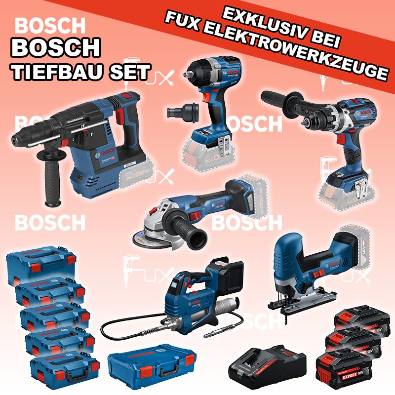Zu "Bau / Tiefbau Set" von Bosch Professional FUX SPECIAL EXKLUSIV BEI FUX Bosch Professional Tiefbau Set 2 Bestell- und Artikelnummer: BOTiefbau Set 2 GSR 18V-110 C Akku-BohrschrauberAkkuspannung 18 V Drehzahlen 0-480 / 0-2100 U/min Drehmoment weich / hart / max. 47 / 85 / 110 Nm Gewicht 2.2 kgInfos GBH 18V-26 F Akku-BohrhammerAkkuspannung 18 V Einzelschlagstärke 2.6 J Bohrleistung in Beton 4 - 26 mm Gewicht Netto 3.0 kgInfos GST 18V-125 S Akku-StichsägeAkkuspannung 18 V Hubzahl bei Leerlauf 500 - 3500 min⁻¹ Hubhöhe 26 mm Gewicht exkl. Akku 1.9 kgInfos GWS 18V-15 C Akku-Winkelschleifer BiturboAkkuspannung 18 V Leerlaufdrehzahl 11000 U / min 125 mm Scheiben Gewicht inkl. Akku 3.2 kg Infos GDS 18V-750 C Akku-DrehschlagschrauberAkkuspannung 18 V Drehzahlen 0 - 2400 min⁻¹ Drehmoment, max. 750 Nm Gewicht exkl. Akku 1.7 kgInfos GFP 18V-10 Akku-KartuschenpresseAkkuspannung 18 V Druck max. 9’999.9 psi Durchflussmenge bis 320 g/minInfos Reduktions Adapter 1/2" auf 1/4" Aufnahme Max. 350 Nm Länge 45 mmInfos 3x EXBA18V-80 + EXAL18V-160 Starter-Set3 x EXBA18V-80 Akkupack EXAL18V-160 LadegerätInfos Standard-Ausrüstung In diesem Set enthalten: GSR 18V-110 C Akku-Bohrschrauber GBH 18V-26 F Akku-Bohrhammer GST 18V-125 S Akku-Stichsäge GWS 18V-15 C Akku-Winkelschleifer Biturbo GDS 18V-750 C Akku-Drehschlagschrauber GFP 18V-10 Akku-Kartuschenpresse Reduktions Adapter 3x EXBA18V-80 + EXAL18V-160 Starter-Set Geliefert im Koffer Zubehör Listenpreis CHF 2'803.30 Fuxpreis CHF 2'075.00 inklusive 8.1% MwSt Frankolieferung Kein Grauimport! Produkt bestellen 1 Stück 2 Stück 3 Stück 4 Stück 5 Stück 6 Stück 7 Stück 8 Stück 9 Stück 10 Stück Alle Angaben ohne Gewähr und solange Vorrat reicht! Produkt als PDF NEUHEITAKTION 25%